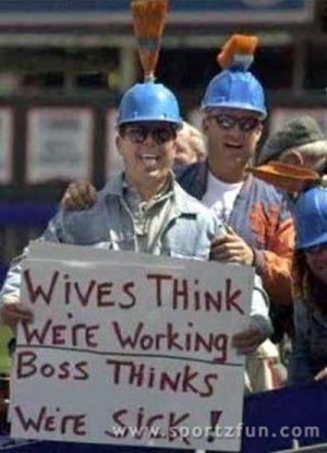 These are some very funny sports fan signs. These folks must stay up late at night thinking these clever sayings up. They make fun of everything from the other team players to the referees to the person sitting next to them.